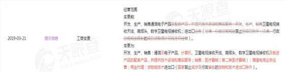 變更之后,華為終端有限公司的經(jīng)營范圍為開發(fā)、生產(chǎn)、銷售:通信及電子產(chǎn)品、計算機(jī)、衛(wèi)星電視接收天線、高頻頭、數(shù)字衛(wèi)星電視接收機(jī)及前述產(chǎn)品的配套產(chǎn)品,并提供技術(shù)咨詢和售后服務(wù);銷售:醫(yī)療器械(第二類醫(yī)療器械);增值電信業(yè)務(wù)經(jīng)營;傭金代理;貨物或技術(shù)進(jìn)出口(國家禁止或涉及行政審批的貨物和技術(shù)進(jìn)出口除外)。