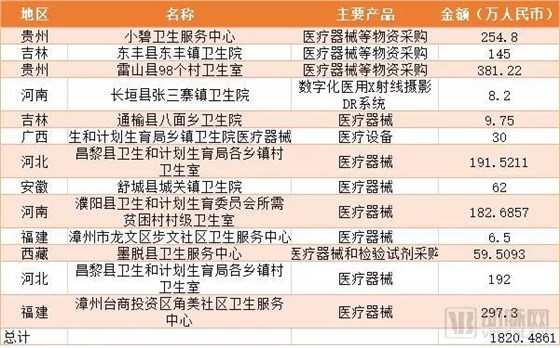 動脈網(wǎng)查詢了近半年來的基層醫(yī)療衛(wèi)生機(jī)構(gòu)招標(biāo)公告發(fā)現(xiàn),13家基層醫(yī)療機(jī)構(gòu)在半年內(nèi)的醫(yī)療器械采購額約1894萬元。其中一級醫(yī)院的采購額基本在100萬-300萬元之間,社區(qū)衛(wèi)生服務(wù)中心購買能力更弱一些。