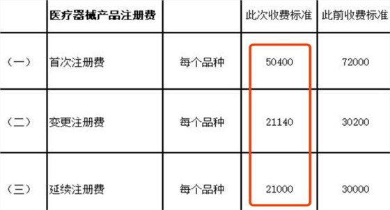 文件里指出,Ⅱ類醫(yī)療器械,每個(gè)品種首次注冊(cè)費(fèi)較之前降低21600元,直降30%;變更注冊(cè)費(fèi)較之前降低9060元;延續(xù)注冊(cè)費(fèi)較之前降低9000元。該通知自2019年4月10日起執(zhí)行,有效期五年。