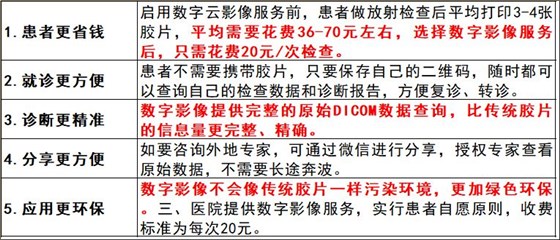 溫州醫(yī)科大學(xué)第五醫(yī)院發(fā)布的公告中,明確說明選擇數(shù)字影像的優(yōu)勢和醫(yī)用傳統(tǒng)膠片的劣勢: